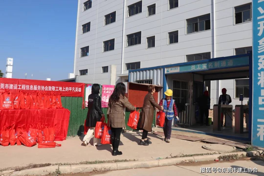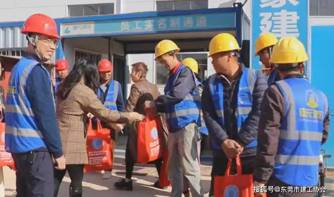 党支部书记黄广静,宣传干事、东莞建商俱乐部曹秋梅,以及执行秘书长彭任慧,为工人们一一为大家送去了精心准备的物资,传递着来自协会的关爱与问候,那份心意如同冬日暖阳,温暖着每一位建设者的心,现场充满了温馨而感人的气氛。