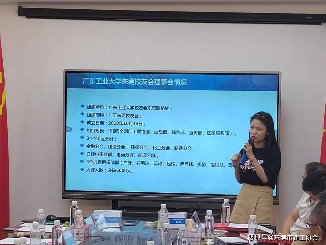 紧接着,广东工业大学东莞校友会专职秘书李嘉琪为大家介绍广东工业大学东莞校友会,介绍了校友会的规模现状、发展历程以及各类活动,同时也是唯一一个以篮球基因特色的校友会,易建联、朱芳雨、周鹏等众多CBA篮球明星都毕业于广工,随后李秘书为大家播放了校友会的会歌,这首会歌充分展现了校友会同学们的英姿勃发和校园特有的温馨以及青春活力。同时为大家介绍了校友会倡导“以商养会”的先进管理模式。