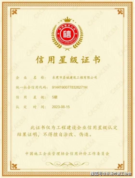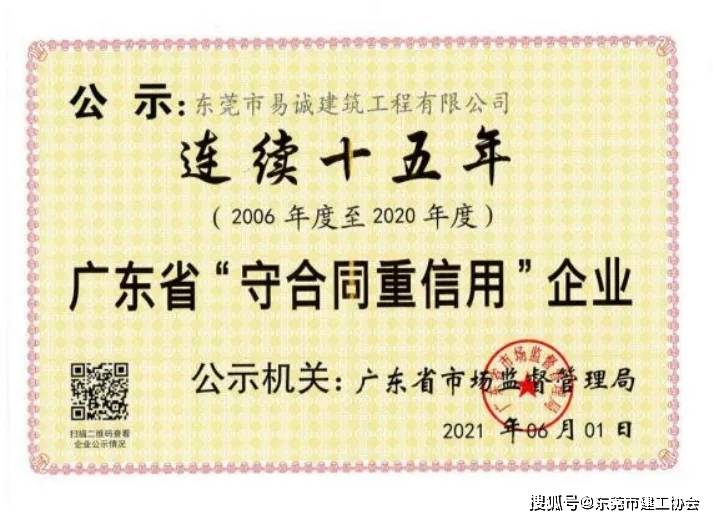 易诚建筑成立于2005年,现有国家建筑工程施工总承包一级企业、建筑装修装饰工程专业承包一级企业、市政公用工程总承包二级企业、消防设施工程专业承包二级企业、城市及道路照明工程专业承包二级等各类建筑资质,连续十五年广东省“守合同重信用”企业、广东省高新技术企业。