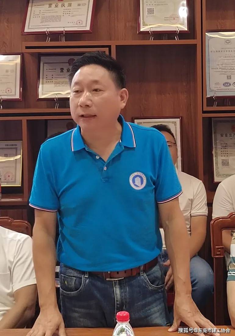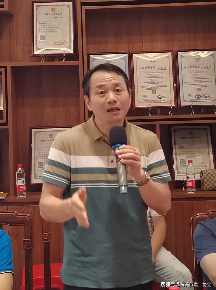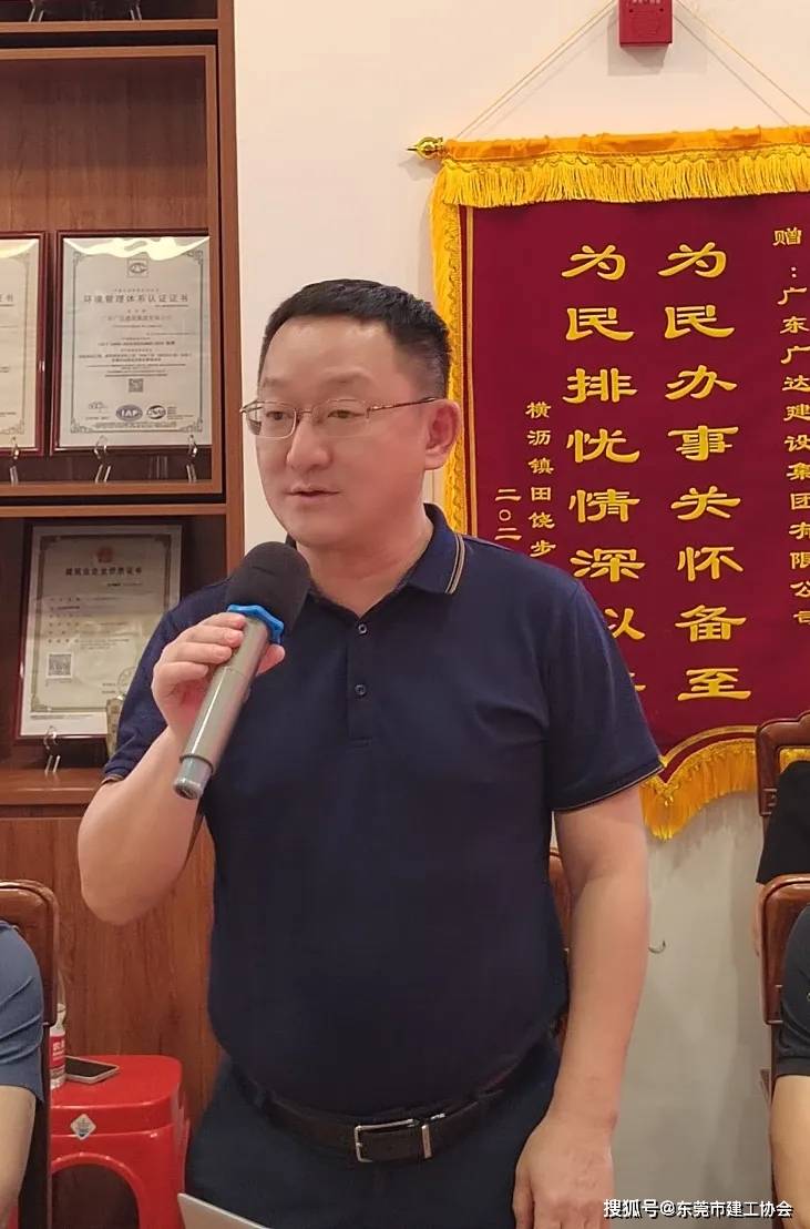 随后,建工协会理事、广达建设总经理邓金成热情地向大家介绍了公司的基本情况。他说明广达建设是一家以技术为核心的建筑集团公司,主营业务涵盖了工程质量检测、房屋安全鉴定、建筑物加固补强、深基坑支护设计及施工、消防安全评估及检测、消防工程专业承包、体育地坪设计及施工、房建市政施工总承包、地基基础工程专业承包等多个领域。邓总表示,公司希望在未来能够与建工协会的成员共享资源,建立更紧密的联系,共同探索合作的可能性,实现互利共赢。他的介绍不仅展示了广达建设的专业能力,也表达了公司对协会成员间合作与交流的期待。