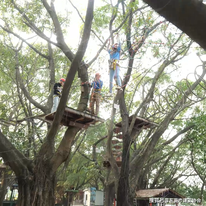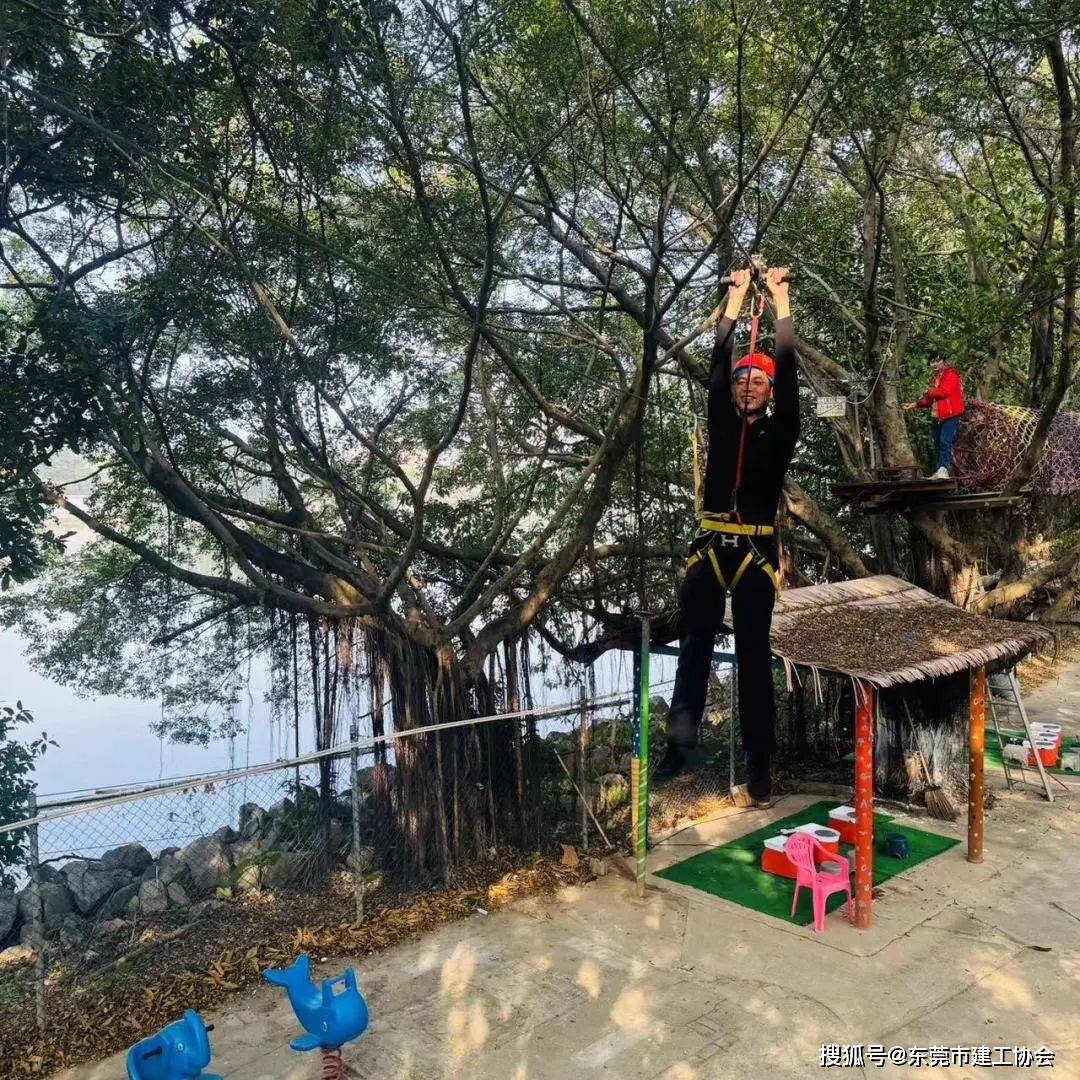 另一边丛林穿越区,有着冒险劲的精神小伙,选择丛林穿越项目,现场有的环节惊险万分,时不时听到一些尖叫声,地上的吃瓜群众比在树梢和半空架着的玩家们还要紧张。