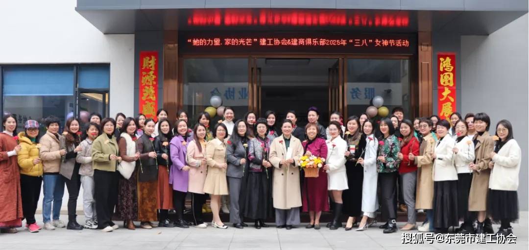 2025 年 3 月 8 日,东莞市建设工程信息服务协会携手建商俱乐部在东莞建商产业园内联合举办了一场别开生面主题为“她的力量,家的光芒”三八女神节特别活动,近 50 名女企业家欢聚一堂,共同度过一个属于女性的美好节日,产业园大院内气氛浪漫而温馨,此次联合活动不仅促进了资源交流,也为女性们提供了一个展示自我、享受生活的平台。